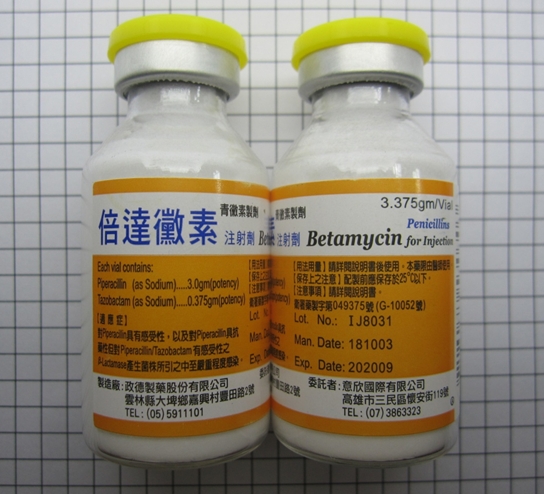 | 成分 | piperacillin 3gm + tazobactam 0.375gm |