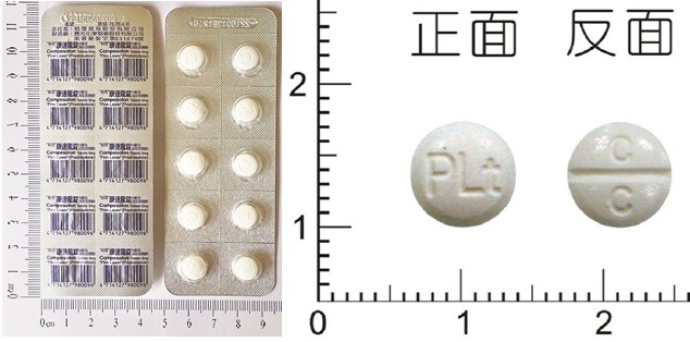 白色圓形錠,兩面有PLt及C字樣